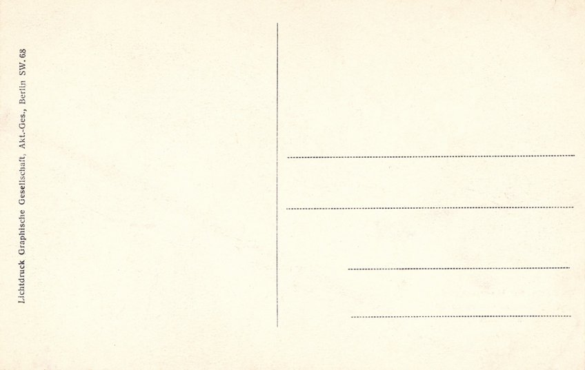 Interesting to know is also the role C.H. Oscar Lange from Berlin-Schoeneberg played. He did run two own companies, both had to do with postcards. But he was also one of the early shareholders of Graphische Gesellschaft A.G. In TPA issue 35 is an article that reveals that Oscar Lange worked also as "jobber" for GG, means he secured postcard printing orders. Had his own printing sample/promotion postcards including fold-out panorama views.