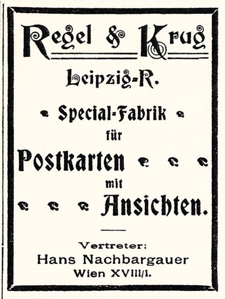 Regel & Krug‘s business activities appear to have concentrated on places in Austro-Hungarian Empire as well as views from South Germany. A review of cards from Amstetten, Austria, printed/published by R&K was published in "Monatsschrift fuer Ansichtskarten-Sammler", double issue 5/6 from 1 January 1896. The reviewer praised the quality and mentions the special interest of the Leipzig company in Austrian views.