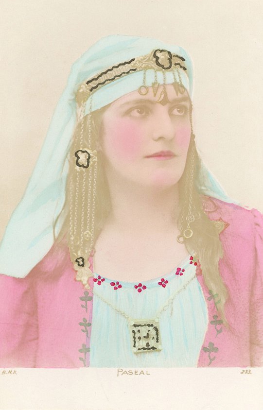 BNK was an export-oriented printer/publisher. During the early years of real photo card production, many cards said to had been exported to Russia, but also France, Belgium, Austro-Hungarian Empire etc. To be competitive they widely used images of female actors/dancers/singers by French, Italian and other international photographers/studios.