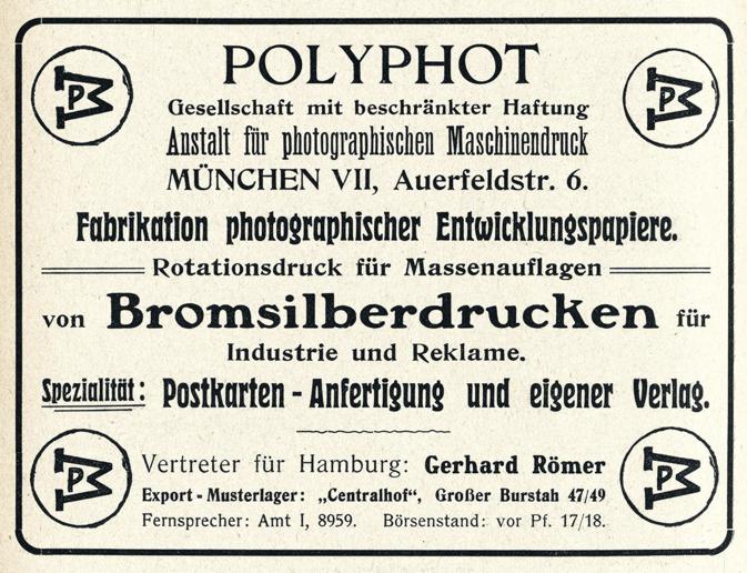 Polyphot GmbH, Anstalt für photographischen Maschinendruck, Munich VII, Auerfeldstr. 6.