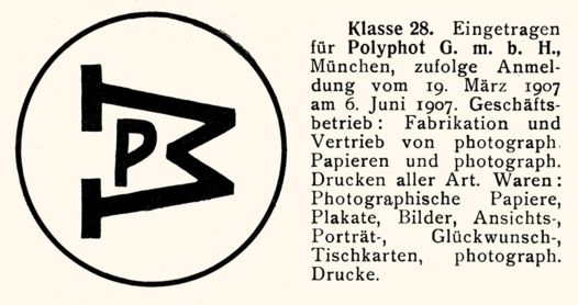 Renamed into Polyphot GmbH (business capital 90,000 Marks) in late October 1906. The company moved into a new erected building at Auerfelderstr. 6, Munich. At this place a (demolished then) building erected in 1876 had been the home the regional lunatic asylum. During WW1 years the former Polyphot premises was used as a soup kitchen for the local people.
