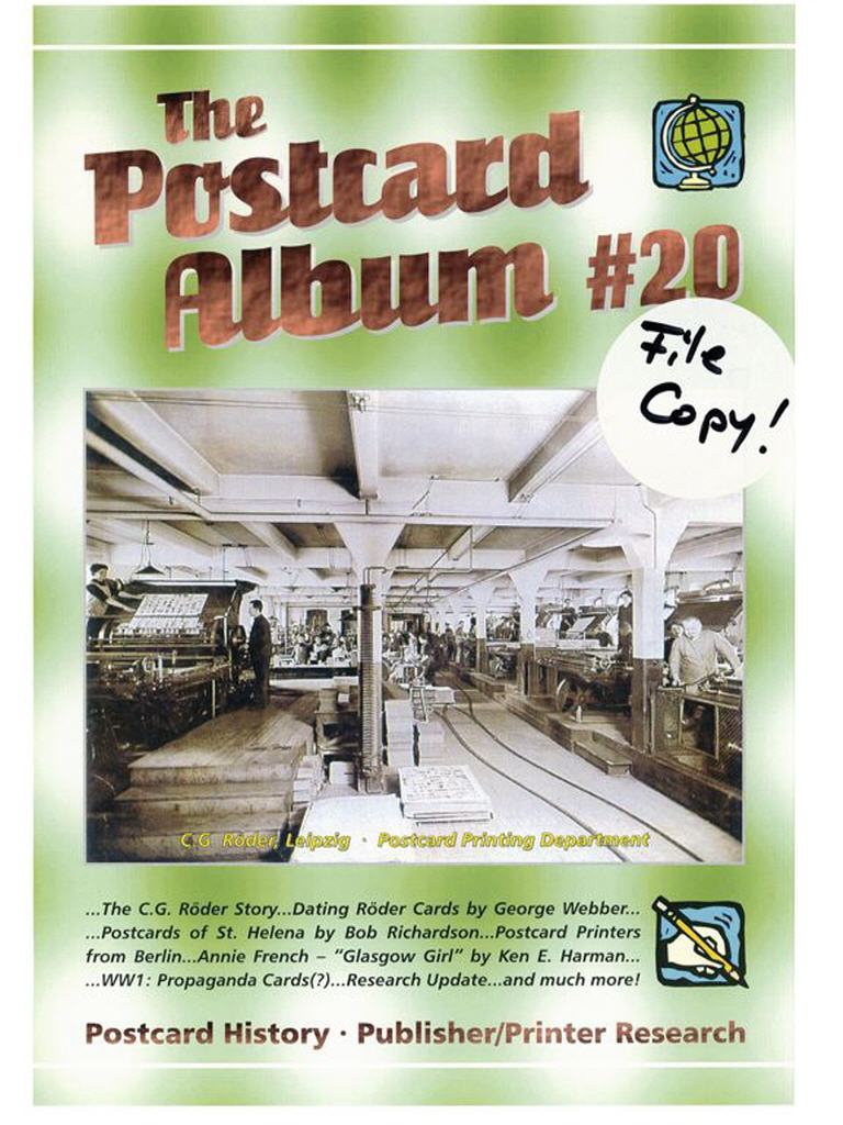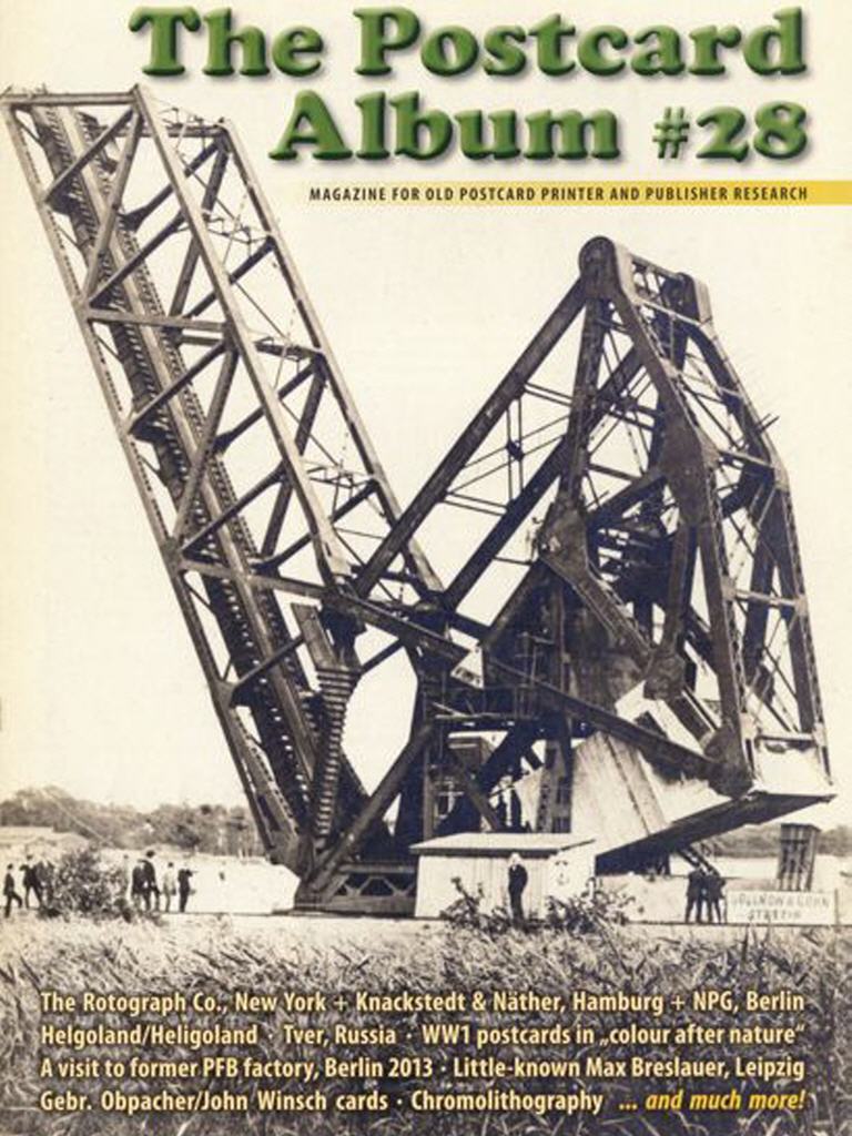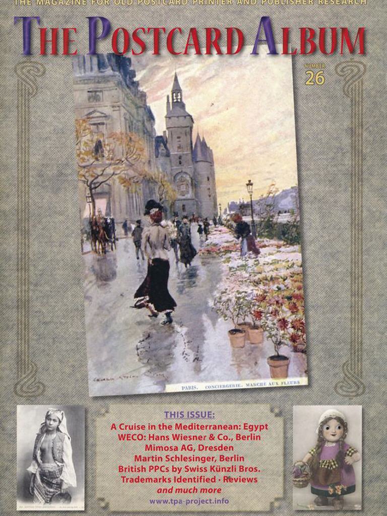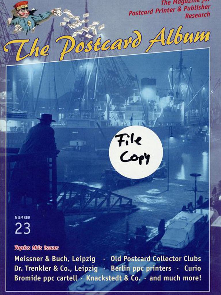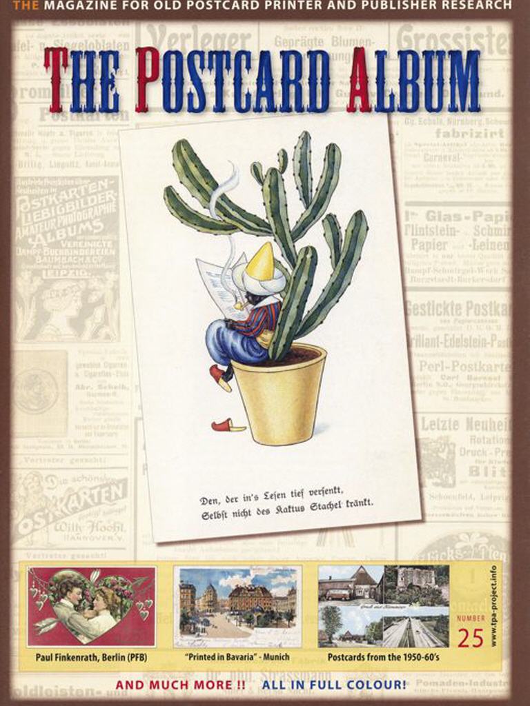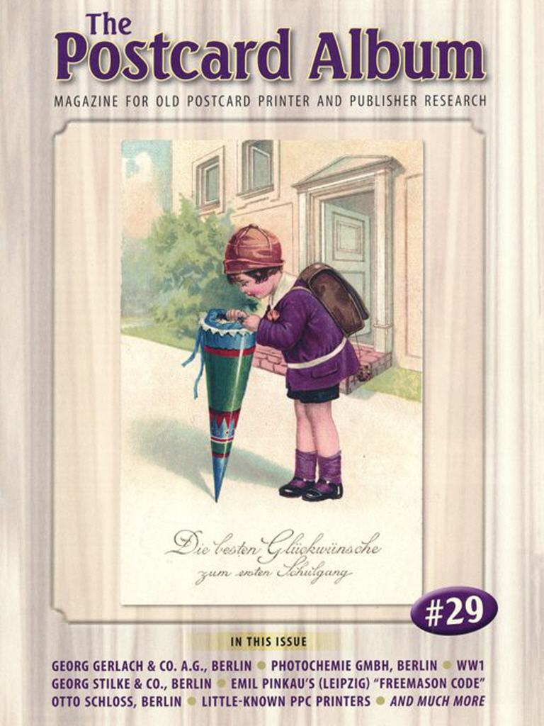 TPA 20 (48 pages) another highlight. Besides Ken Harman‘s work on Annie French, Early St. Helena cards by Bob Richardson, was a new series on old postcard trade companies from Berlin. George Webber presented a detailed dating of batch number used on the masses of cards by C.G. Roeder. The result of some 10 years of research by George and assisted by a number of committed collectors worldwide. It allows to date also not postally used Roeder printed cards. The editor contributed the entire C.G. Roeder, Leipzig, company history. Little-known Roeder was one of Germany‘s biggest postcard contract printers for decades.