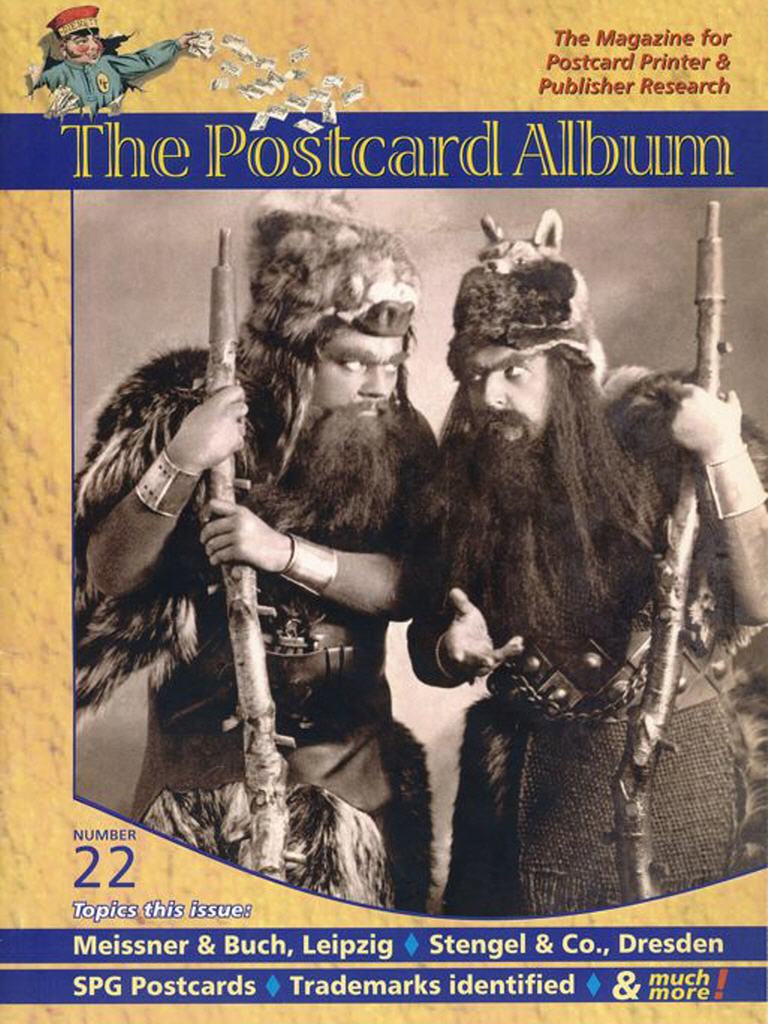 TPA 19 was published in 2002, 40 pages, colour cover and centerfold. With articles on Carl Garte, Leipzig, a well illustrated company history of the ppc printers Junghanss & Koritzer from Meiningen, Liselotte Erlanger Glozer wrote on opera cards, George Webber on British Knackstedt & Naether cards, C. G. Roeder a topic again and not to forget "Colonel Harrison‘s African Pygmies" by Sally A. Fall.